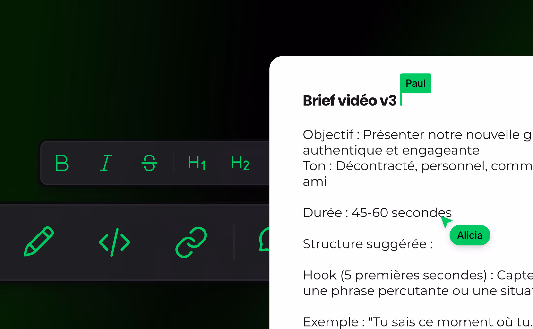 Élaboration d’un brief pour chacun des contenus tournés, l’objectif est de trouver l’équilibre entre créer une vidéo qui apportera des résultats tout en laissant de la liberté aux créateurs.